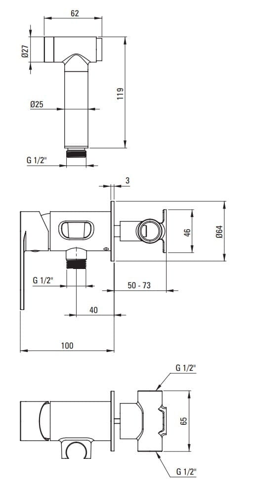 Bateria bidetowa podtynkowa ze słuchawką typu bidetta Deante Alpinia