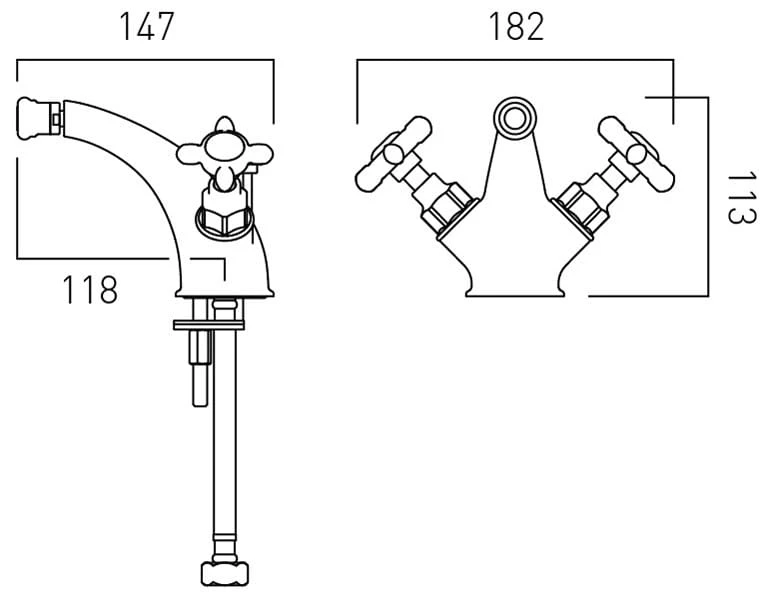 Bateria bidetowa z korkiem Axbridge Cross nikiel polerowany Vado