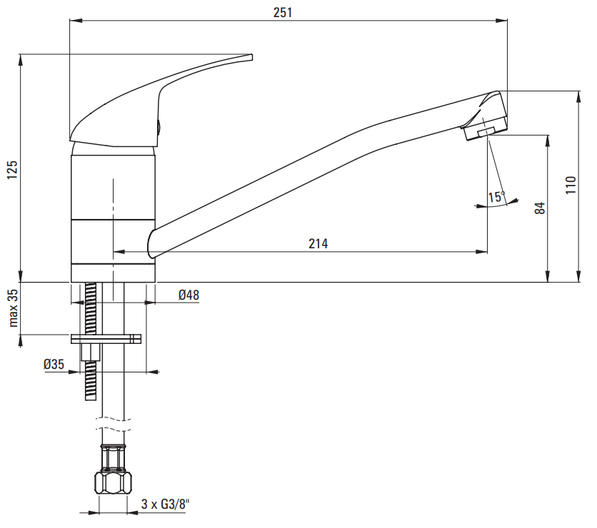 Bateria niskociśnieniowa zlewozmywakowa przeznaczona jest do miejsc, w których nie ma dostępu do systemowej ciepłej wody. Stworzona została z myślą o domkach letniskowych czy kuchniach ogrodowych. Ruchoma wylewka o dużym zasięgu, bo aż 214 mm z powodzeniem sprawdzi się w zlewozmywakach dwukomorowych. Bateria wyposażona jest w aerator napowietrzający strumień wody, który znacznie ogranicza jej zużycie. Korpus baterii wykonany z najwyższej jakości mosiądzu. W komplecie 3 szt wężyków 50 cm, M8x3/8"