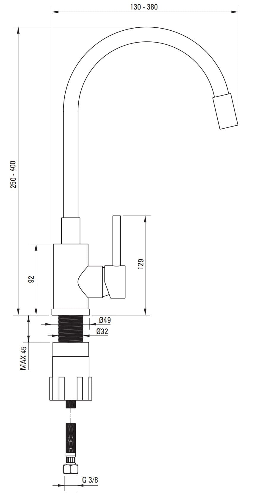 - zasięg wylewki 38 cm.