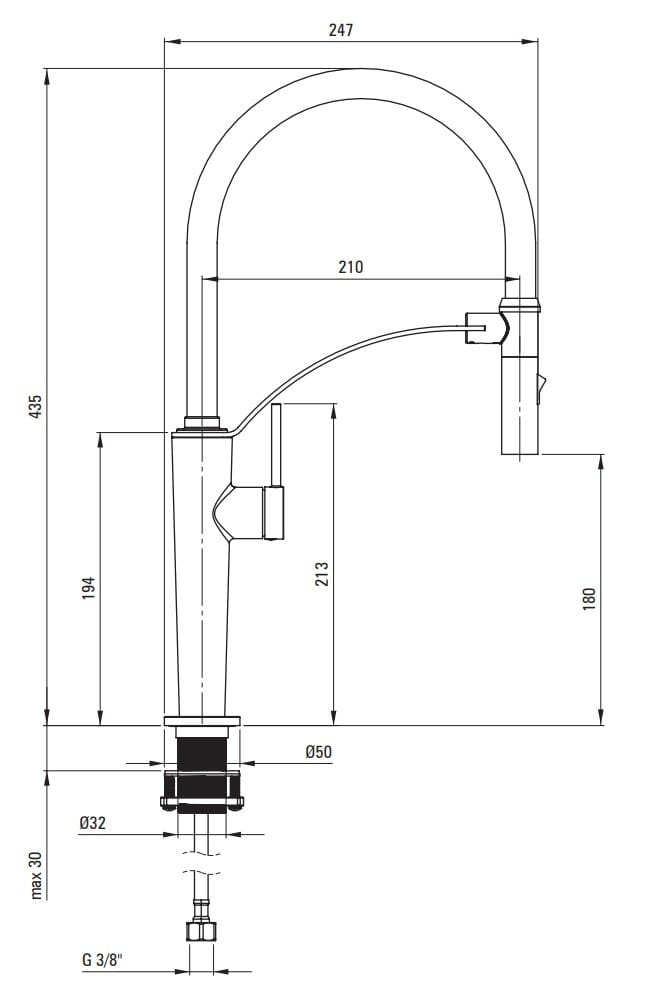Funkcjonalna bateria kuchenna zaprojektowana została z myślą o wysokiej użyteczności oraz estetycznym wyglądzie. Elegancki design sprawia, że pasuje do wnętrz nowoczesnych, ale też skandynawskich czy bardziej tradycyjnych. Bateria zlewozmywakowa posiada aerator, który redukuje życie wody, co przy ręcznym myciu naczyń jest bardzo istotne. Dodatkowo napowietrzony strumień jest bardziej miękki. Wylewka jest elastyczna, co ułatwia spłukiwanie dużych i niewymiarowych elementów np. blachy z piekarnika lub półki z lodówki. Bateria posiada przełącznik strumienia wody z napowietrzonego na deszczowy.