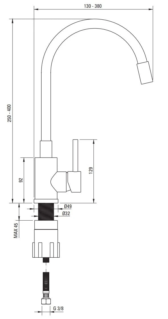 - WĘŻYK PRZYŁĄCZENIOWY - Gwint od instalacji 3/8''