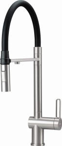 Funkcjonalna bateria kuchenna zaprojektowana została z myślą o wysokiej użyteczności oraz estetycznym wyglądzie. Elegancki design sprawia, że pasuje do wnętrz nowoczesnych, ale też skandynawskich czy bardziej tradycyjnych. Bateria zlewozmywakowa posiada aerator, który redukuje życie wody, co przy ręcznym myciu naczyń jest bardzo istotne. Dodatkowo napowietrzony strumień jest bardziej miękki. To model z podłączeniem do filtra wody. Wylewka jest elastyczna, co ułatwia spłukiwanie dużych i niewymiarowych elementów np. blachy z piekarnika lub półki z lodówki.