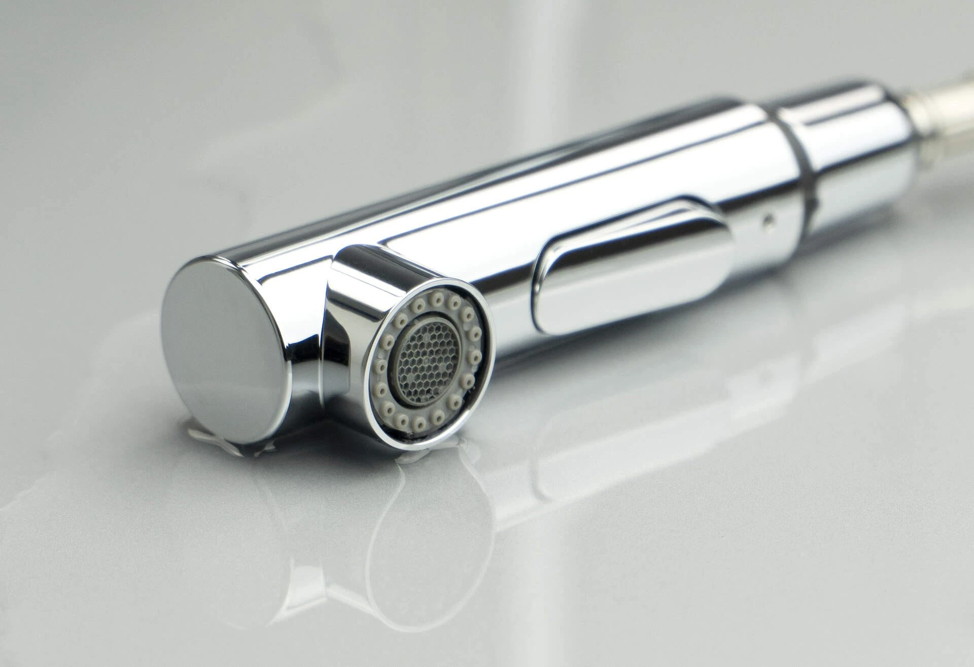 Funkcjonalna bateria kuchenna zaprojektowana została z myślą o wysokiej użyteczności oraz estetycznym wyglądzie. Elegancki design sprawia, że pasuje do wnętrz nowoczesnych, ale też skandynawskich czy bardziej tradycyjnych. Bateria zlewozmywakowa posiada aerator, który redukuje życie wody, co przy ręcznym myciu naczyń jest bardzo istotne. Dodatkowo napowietrzony strumień jest bardziej miękki. Dodatkowo wylewkę można wyciągnąć na długim i elastycznym przewodzie, co ułatwia spłukiwanie dużych i niewymiarowych elementów np. blachy z piekarnika lub półki z lodówki.