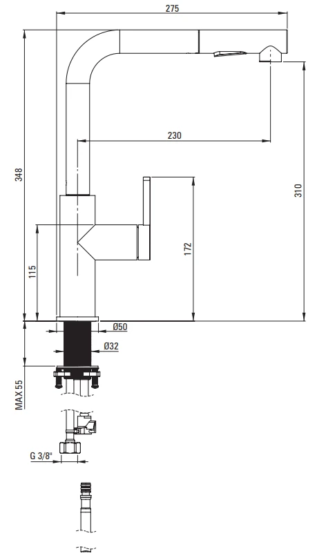 - WĘŻYK PRZYŁĄCZENIOWY - Gwint od instalacji 3/8''