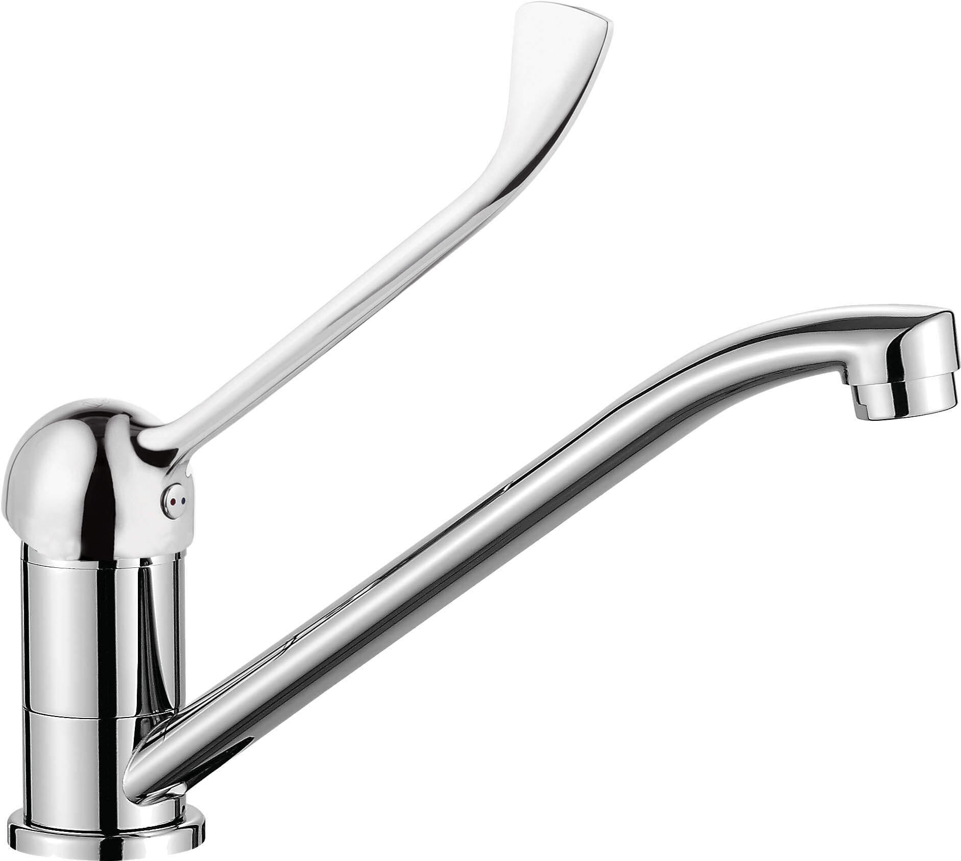 Funkcjonalna bateria kuchenna zaprojektowana została z myślą o wysokiej użyteczności oraz estetycznym wyglądzie. Elegancki design sprawia, że pasuje do wnętrz nowoczesnych, ale też skandynawskich czy bardziej tradycyjnych. Bateria zlewozmywakowa posiada aerator, który redukuje życie wody, co przy ręcznym myciu naczyń jest bardzo istotne. Dodatkowo napowietrzony strumień jest bardziej miękki. Dodatkowo bateria została wyposażona w dźwignię Clinic, przeznaczoną dla osób z mniejszą mobilnością rąk lub bardziej rygorystycznie przestrzegających zasad higieny. Dzięki niej wodę można włączyć lub wyłączyć dosłownie jednym palcem, przedramieniem czy łokciem.
