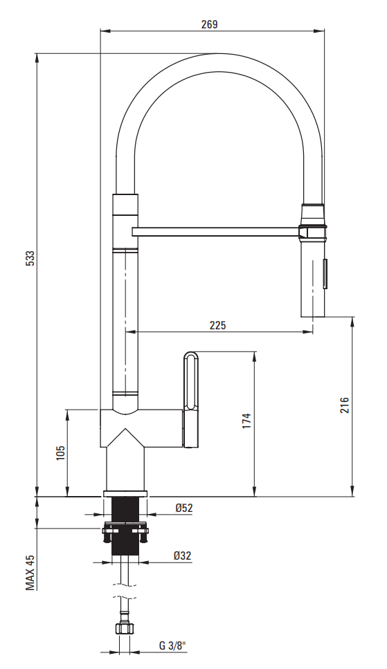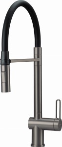 Funkcjonalna bateria kuchenna zaprojektowana została z myślą o wysokiej użyteczności oraz estetycznym wyglądzie. Elegancki design sprawia, że pasuje do wnętrz nowoczesnych, ale też skandynawskich czy bardziej tradycyjnych. Bateria zlewozmywakowa posiada aerator, który redukuje życie wody, co przy ręcznym myciu naczyń jest bardzo istotne. Dodatkowo napowietrzony strumień jest bardziej miękki. Wylewka jest elastyczna, co ułatwia spłukiwanie dużych i niewymiarowych elementów np. blachy z piekarnika lub półki z lodówki. Bateria posiada przełącznik strumienia wody z napowietrzonego na deszczowy.
