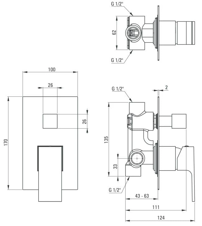 Bateria natryskowa podtynkowa z przełącznikiem natrysku Anemon Bis Deante
