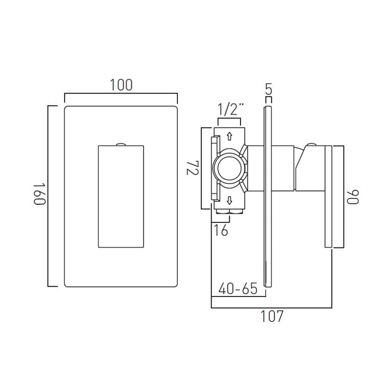 - Montaż podtynkowy, głębokość: 40-65 mm (optymalna 58 mm)