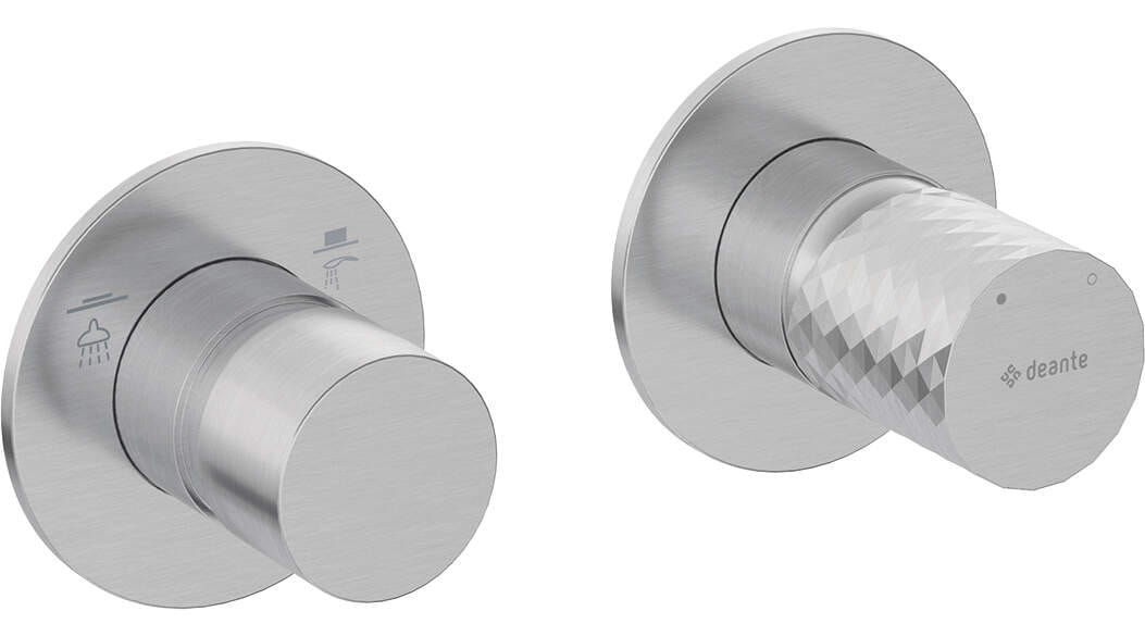 Bateria prysznicowa podtynkowa z przełącznikiem natrysku - pozioma Silia Hexa firmy Deante w kolorze szczotkowanej stali.