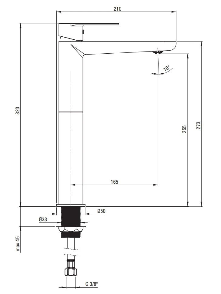 - Zasięg wylewki bateryjnej [mm] 165
