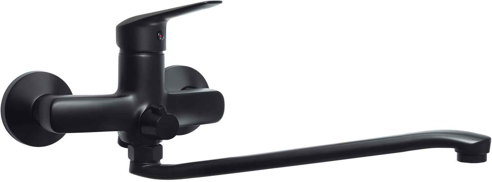 Bateria umywalkowa ścienna z wydłużoną wylewką Boro nero Deante