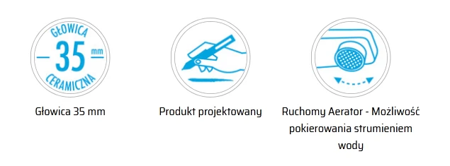 - Ruchomy Aerator - Możliwość pokierowania strumieniem wody Tak