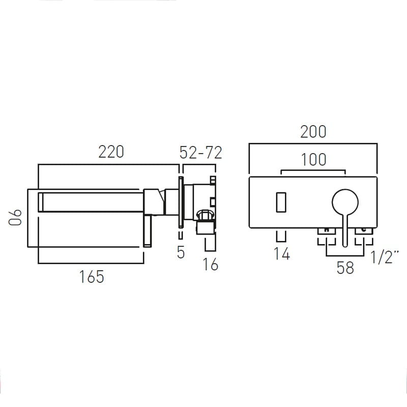 - Montaż podtynkowy, głębokość: 52-72 mm