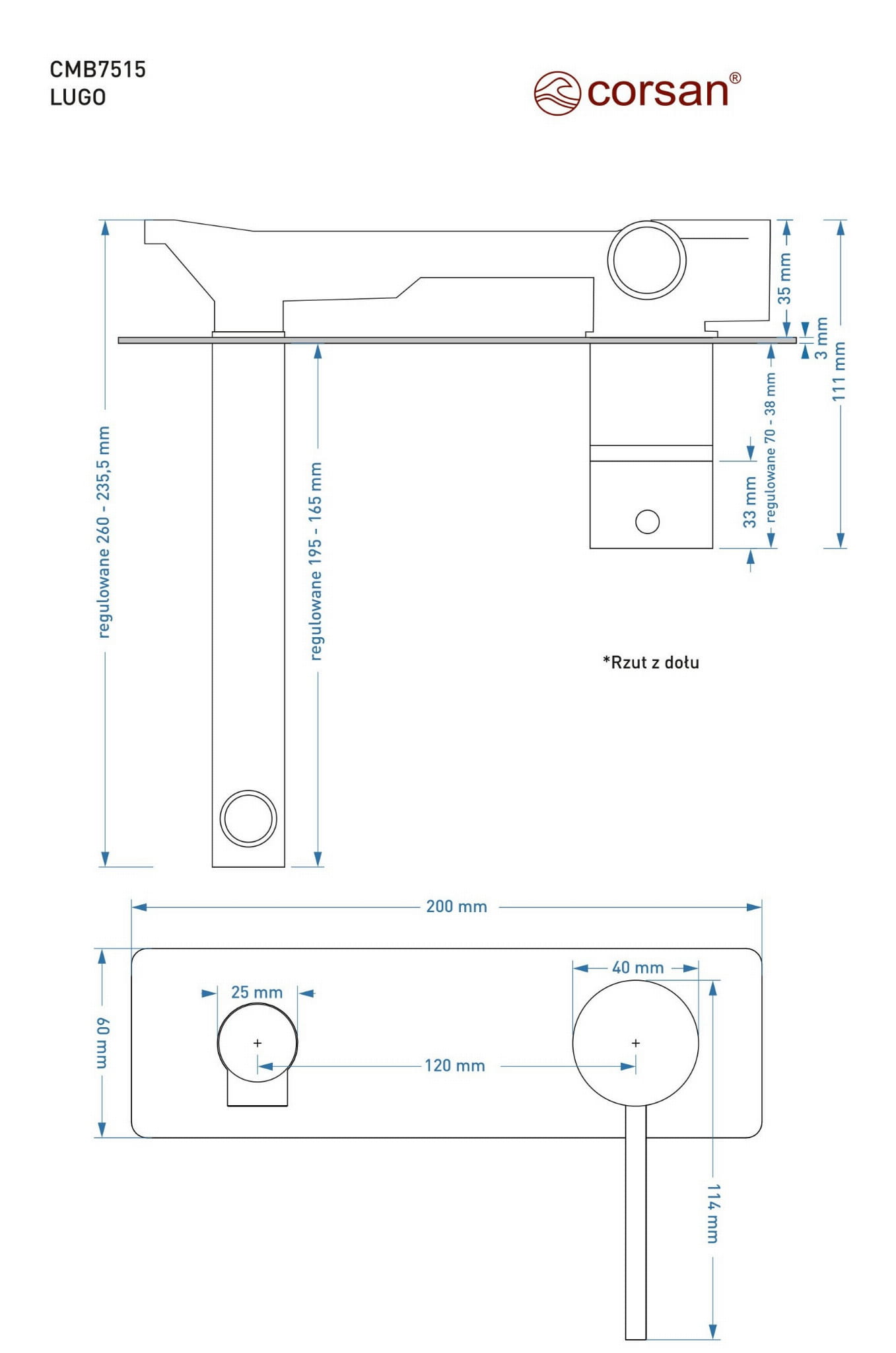 Bateria umywalkowa podtynkowa corsan cmb7515ch lugo chromowana z wylewką