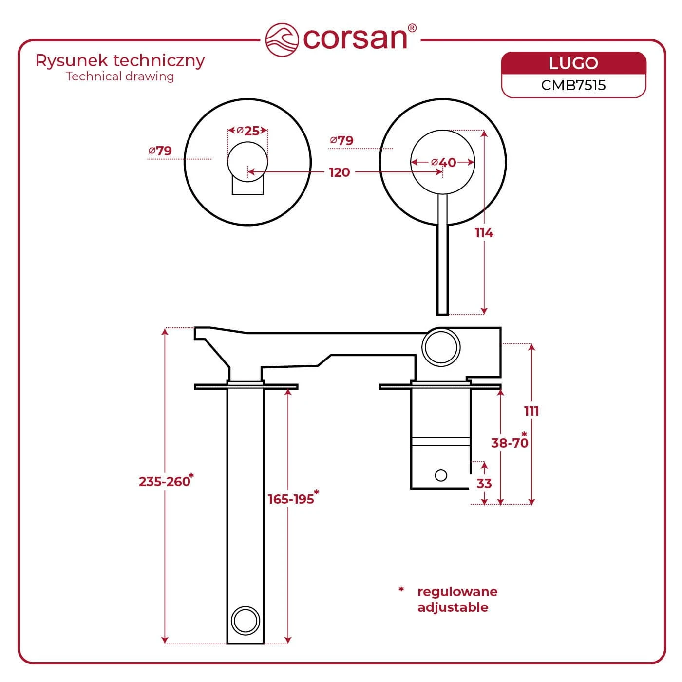 Bateria umywalkowa podtynkowa corsan cmb7515bgl lugo z wylewką złoto szczotkowane
