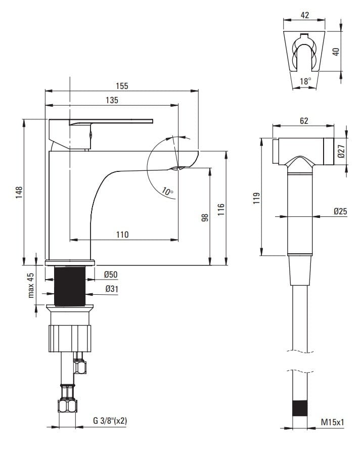 Bateria umywalkowa ze słuchawką typu bidetta Deante Alpinia BGA027M