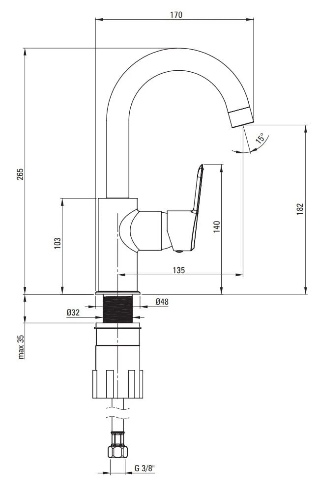 Bateria umywalkowa stojąca z obrotową wylewką U Deante Arnika BQA_024M