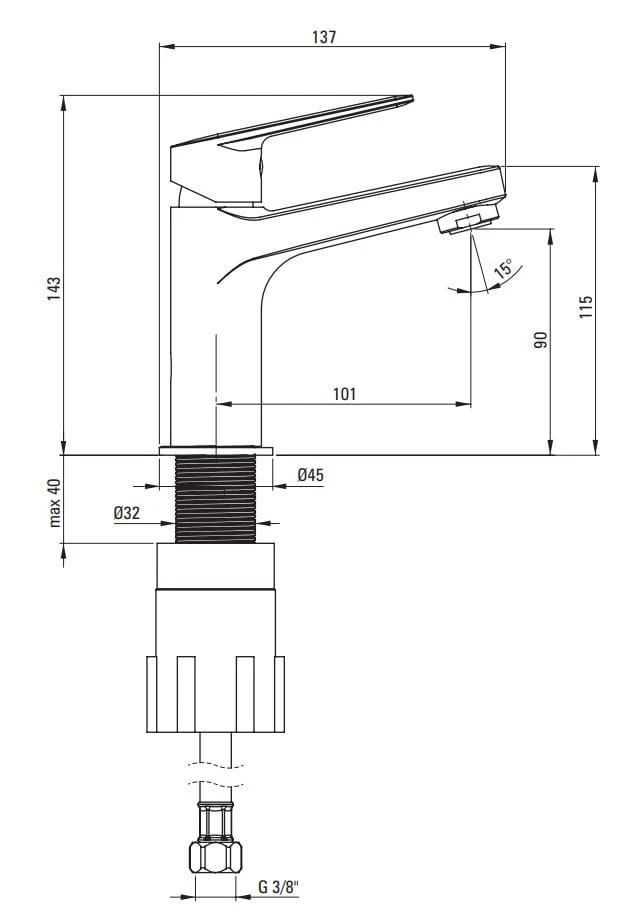 Bateria umywalkowa stojąca Jasmin Deante chrom BGJ020M