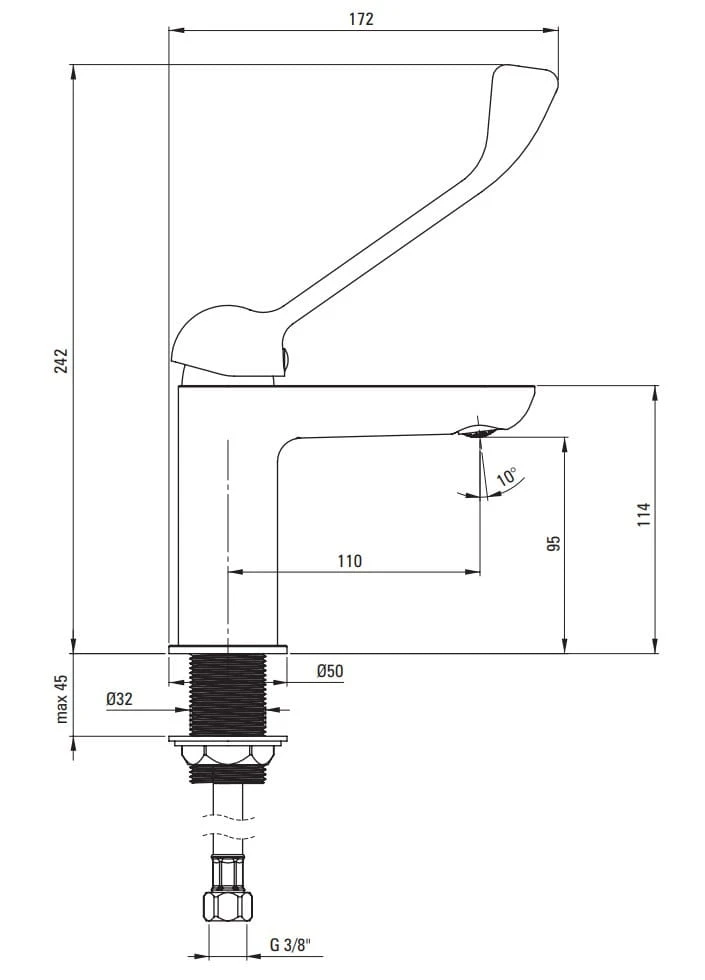 - Wydłużona dźwignia typu Clinic, ułatwiająca obsługę