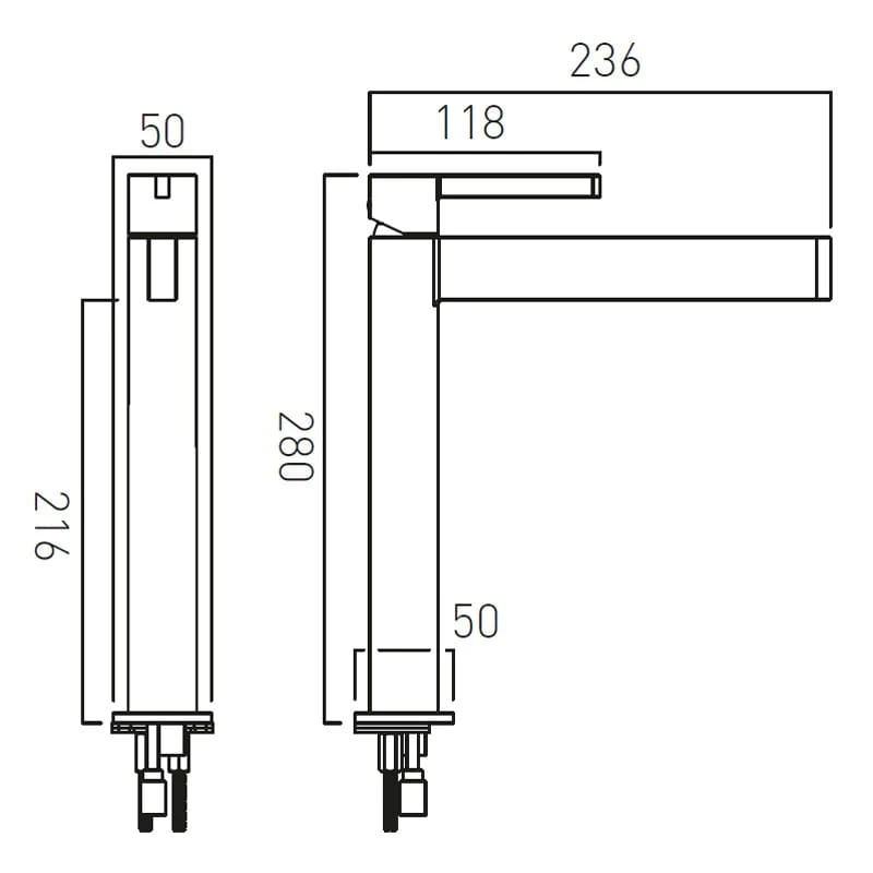 - Wysokość wylewki: 216 mm