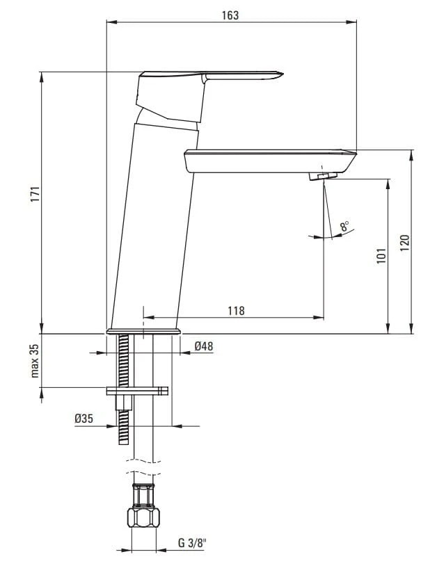 - Zasięg wylewki bateryjnej [mm] 118