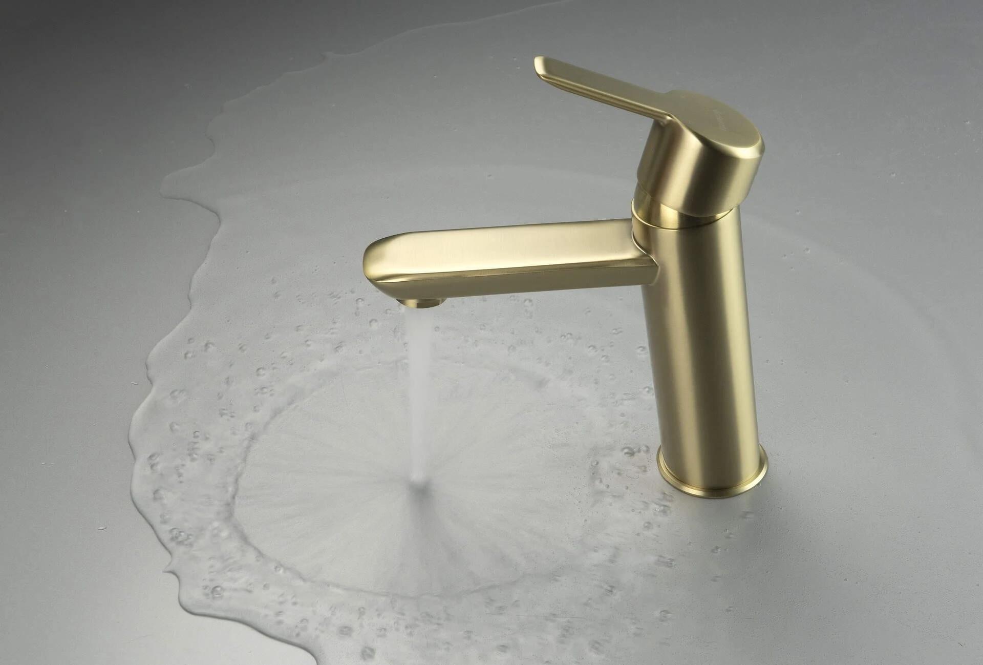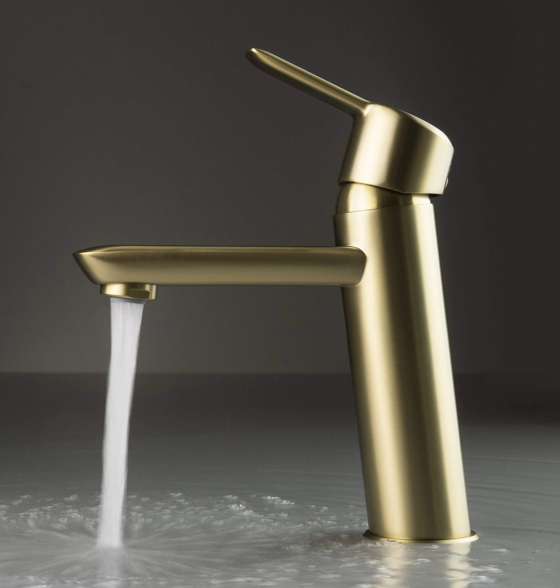 Bateria umywalkowa stojąca Arnika firmy Deante w wykończeniu szczotkowanego złota.