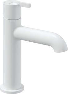 Bateria umywalkowa stojąca Silia firmy Deante w wykończeniu bianco.