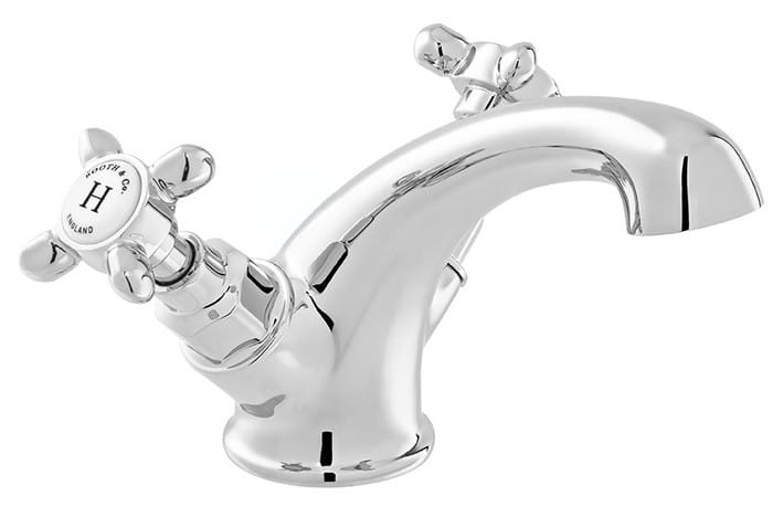 Kolekcja Axbridge brytyjskiej marki BOOTH&Co. dostępna jest w kolorze lśniącego chromu lub polerowanego niklu oraz w dwóch wersjach - z uchwytami krzyżykowymi (Cross) lub podłużnymi (Lever). Baterie łazienkowe i akcesoria posiadają ceramiczne akcenty z logo producenta.