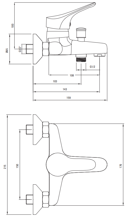 - Bateria bez węża i słuchawki prysznicowej