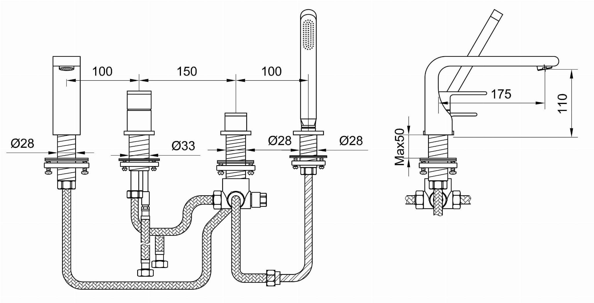 4-otworowa bateria wannowa z mieszaczem