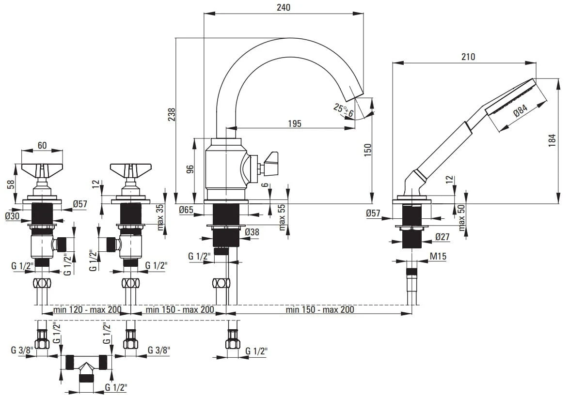 Bateria wannowa 4-otworowa z kompletem natryskowym Deante Temisto