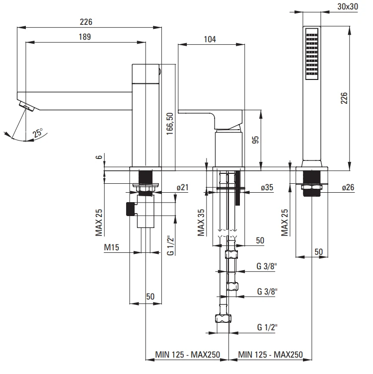 Bateria wannowa 3-otworowa Deante Anemon Bis BBZ_N13M