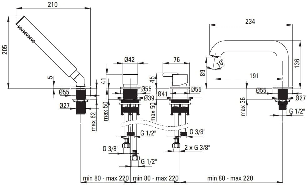 Bateria wannowa 4-otworowa czarna Silia Deante nero