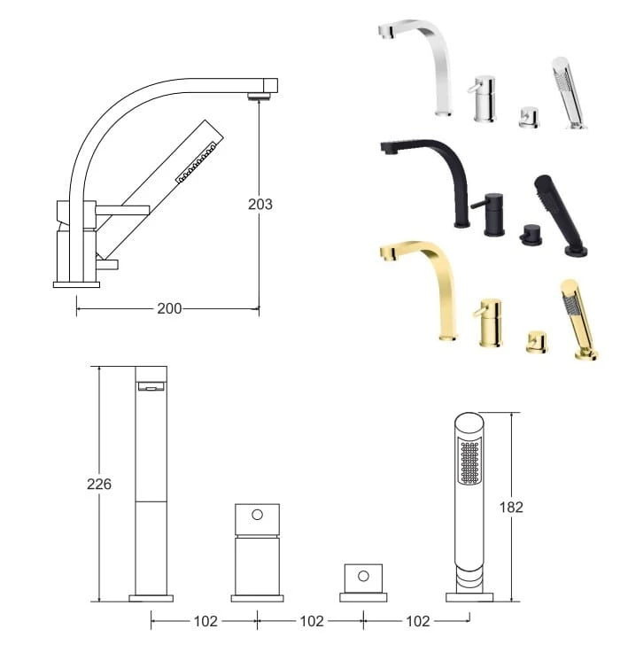 Bateria wannowa 4-otworowa Besco DECCO złota