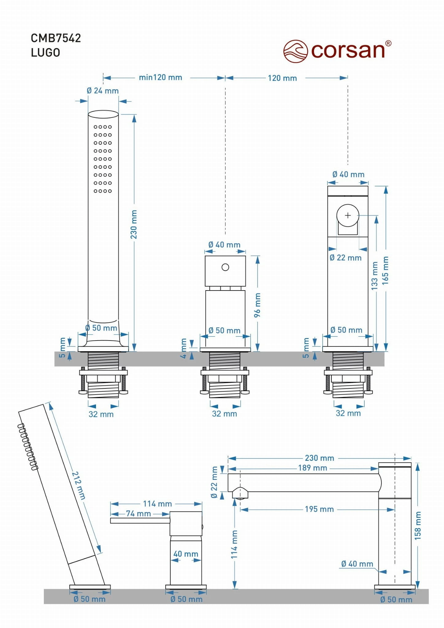 Bateria wannowa otworowa corsan cmb7542ch lugo chromowana