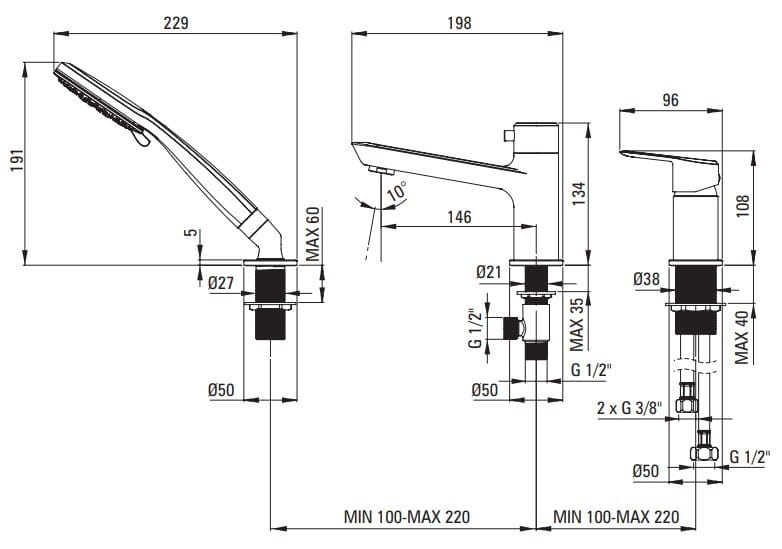 Bateria wannowa 3-otworowa titanium Arnika Deante