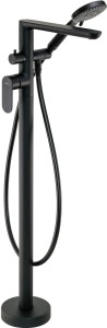 Bateria wannowa wolnostojąca z zestawem prysznicowym z kompleksowej linii Alpinia znakomicie pasuje to łazienki modernistycznej z wolnostojącą wanną. Jej wysokość i podłogowy sposób montażu nadaje pomieszczeniu estetycznego i subtelnego charakteru. Dzięki matowemu wykończeniu nero oraz gładkiej powierzchni bateria będzie zachwycać użytkownika swoim wyglądem przez lata. Ponadto przedstawiona stojąca bateria wannowa została zaopatrzona w mechaniczny, ceramiczny przełącznik natrysku ora aerator napowietrzający strumień wody.