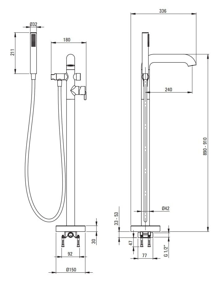 Bateria wannowa wolnostojąca z kolekcji Silia to model wyposażony w wygodny mechaniczny przełącznik strumienia wody, dzięki któremu jednym kliknięciem można przełączyć wodę między wylewką a słuchawką i odwrotnie. Słuchawka prysznicowa posiada przyjemny, deszczowy strumień oraz system Anti-calc, który ułatwia czyszczenie produktu. Bateria wannowa jest minimalistyczna i prosta w swoim designie, jednocześnie cechując się ogromną praktycznością.