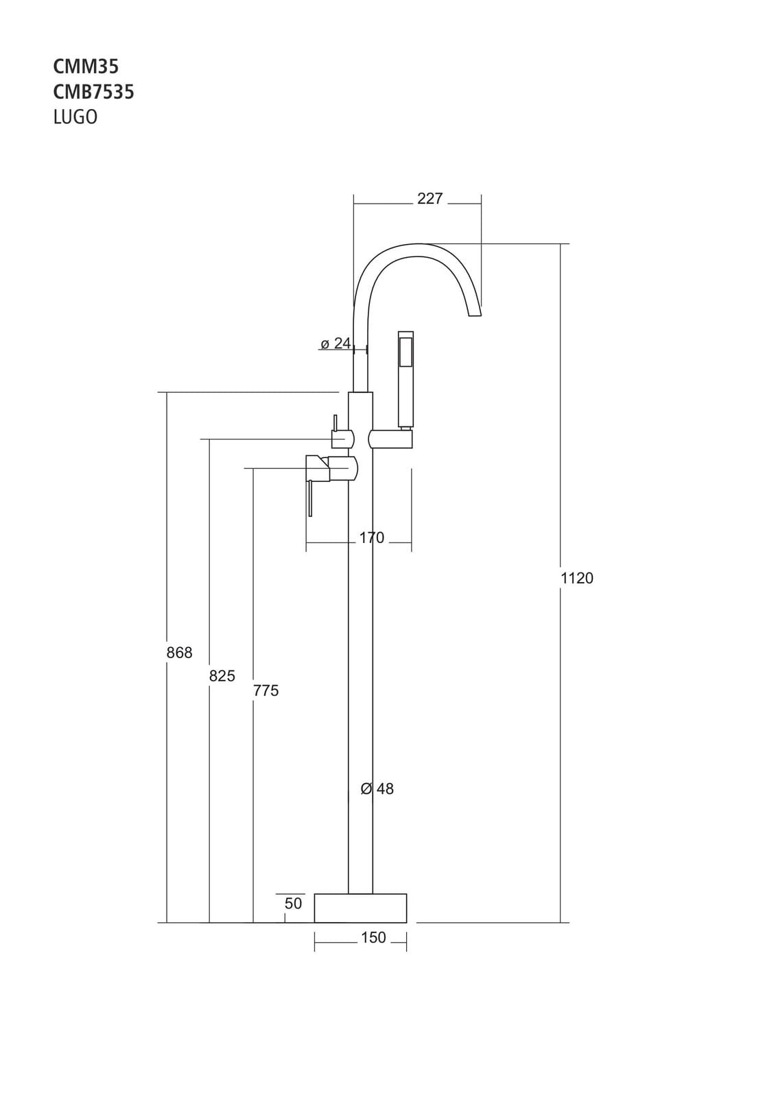 Bateria wannowa wolnostojąca lugo cmb7535bsl stal szczotkowana