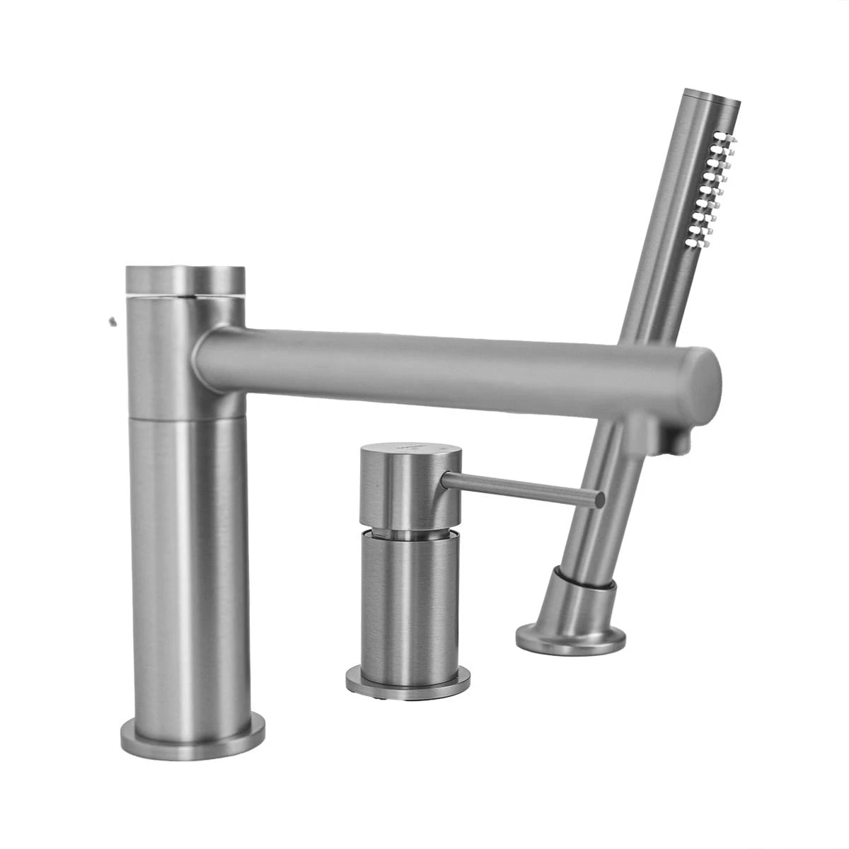 Bateria wannowa 3 otworowa lugo cmb7542bsl z wylewką i słuchawką prysznicową stal szczotkowana