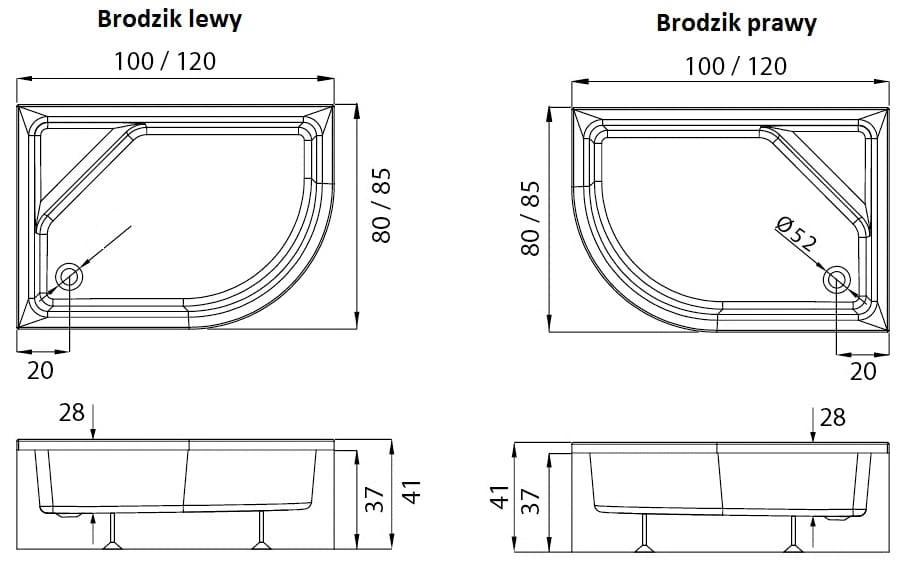 Brodzik asymetryczny New Trendy New Maxima 100x80x41 prawy