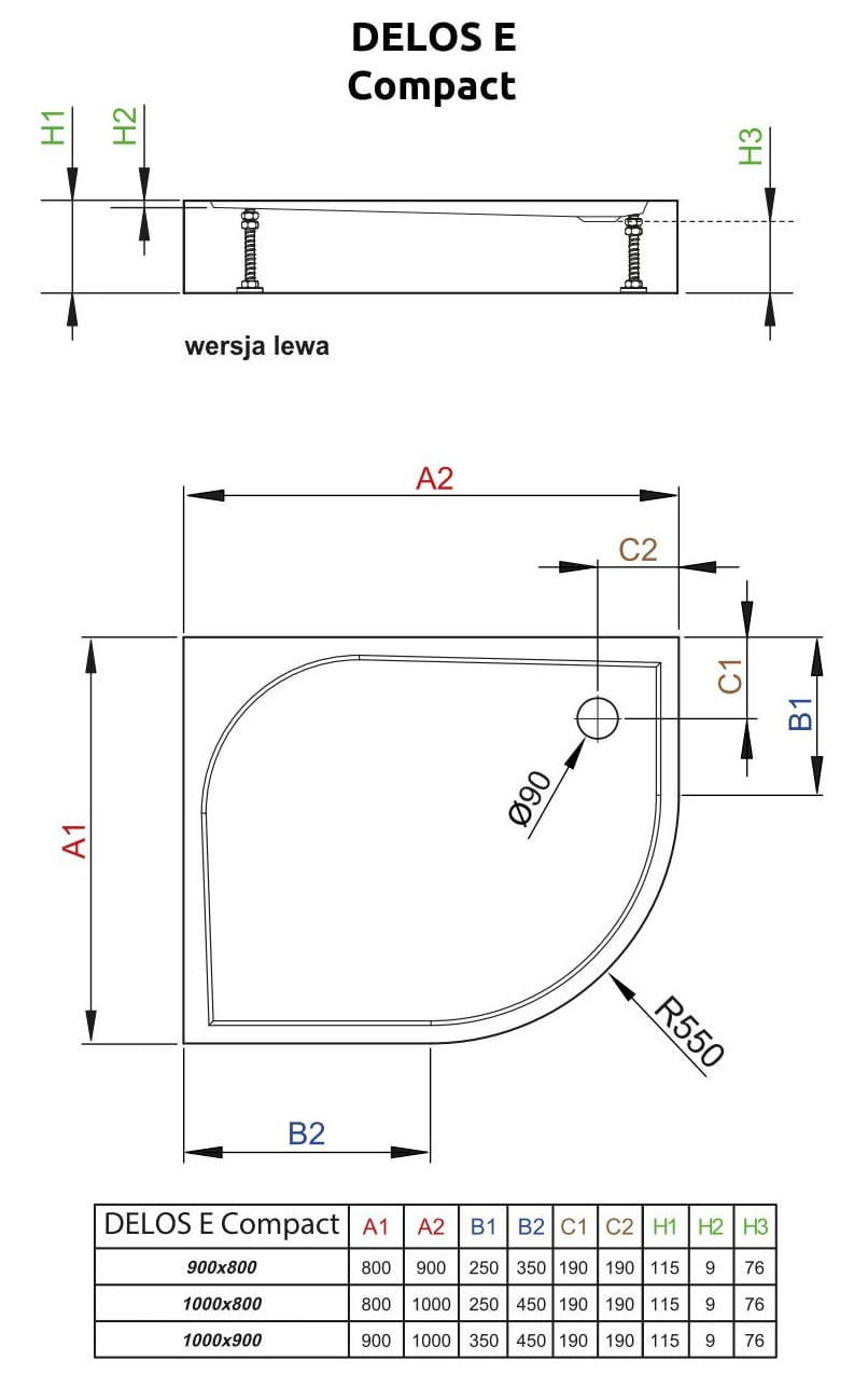 Brodzik asymetryczny Radaway Delos E Compact 90x80x11,5 wariant lewy