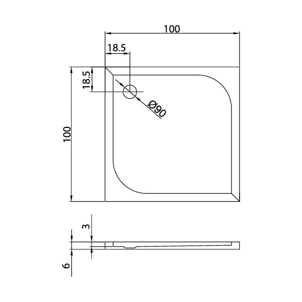 Brodzik kwadratowy New Trendy Cantare 100x100x6