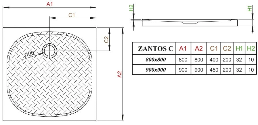Brodzik płytki kwadratowy Radaway Zantos C 90x90x3,2x1,0