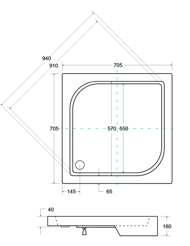 - odpływ 50 mm