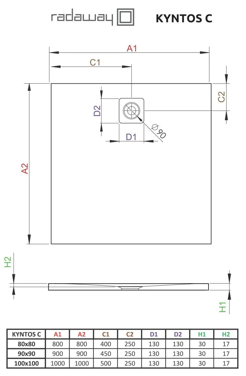 Brodzik kwadratowy Kyntos C 90x90 antracytowy Radaway