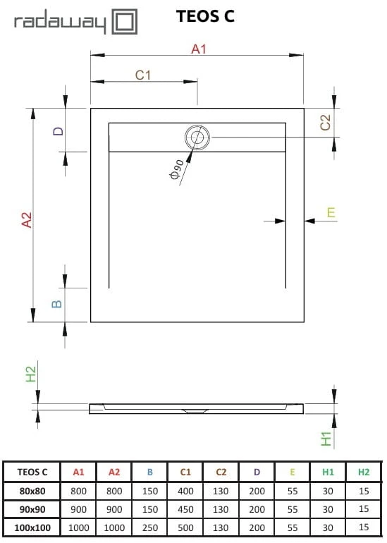 Brodzik kwadratowy Teos C 100x100 biały Radaway