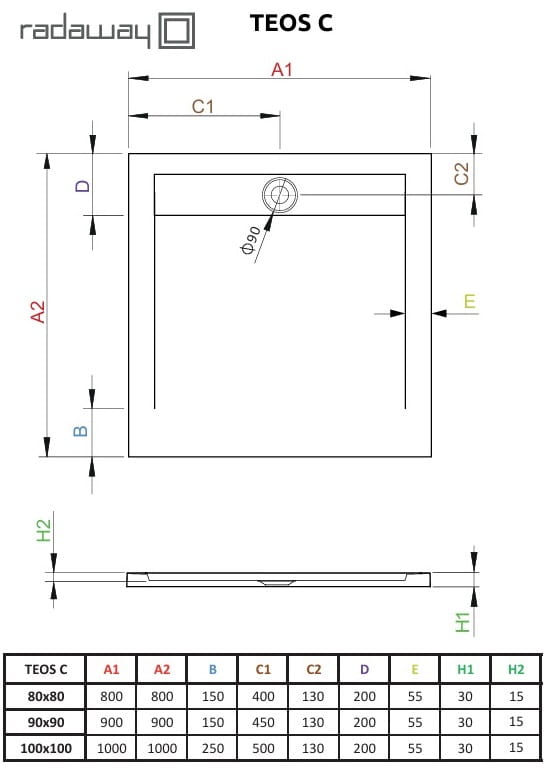 Brodzik kwadratowy Teos C 90x90 antracytowy Radaway