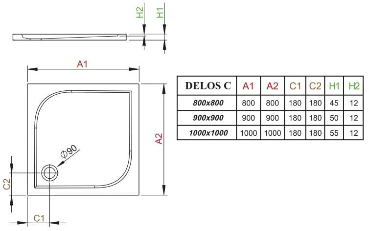 Brodzik płytki kwadratowy Radaway Delos C 100x100x5,5x1,2